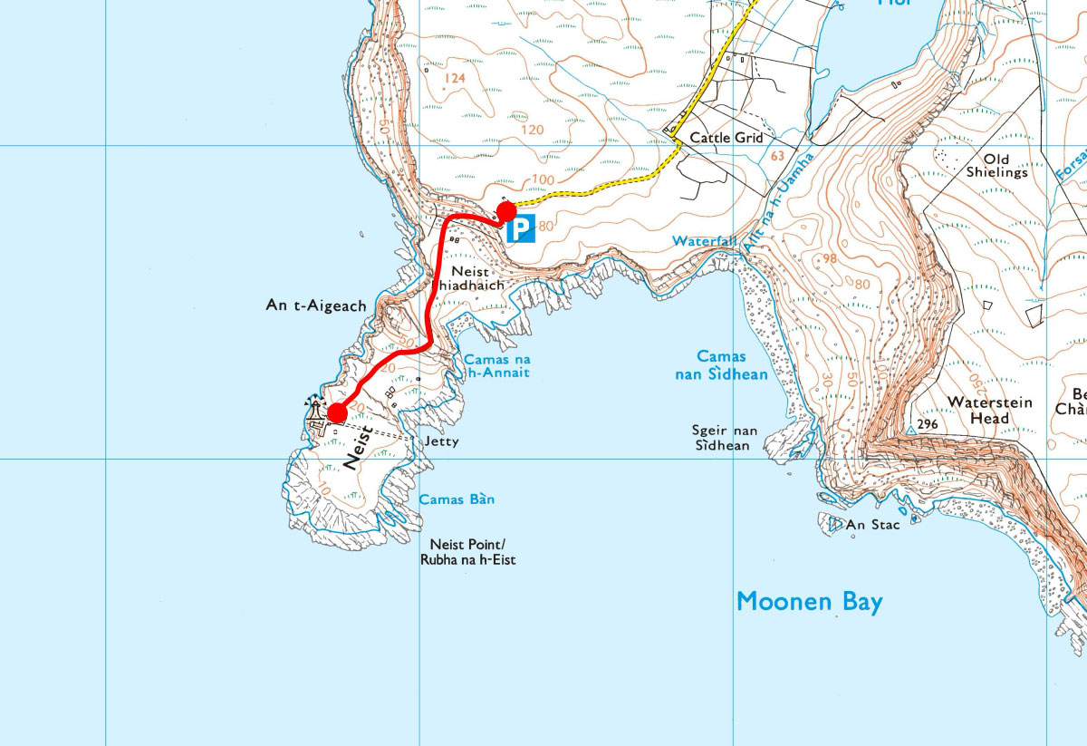 The carpark is located at very end of the single track road 10.5miles from Dunvegan (taking 30 minutes to drive). If traveling from Portree it is 31miles and will take about 1 hour to drive.